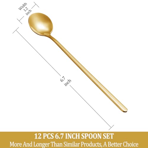 12 Pcs Coffee Spoons Set, 6.7″ Gold Tea Spoons Long Handle, Gold Small Teaspoons, Stainless Steel Espresso Spoon, Long Spoon for Stirring, Coffee Bar Accessories