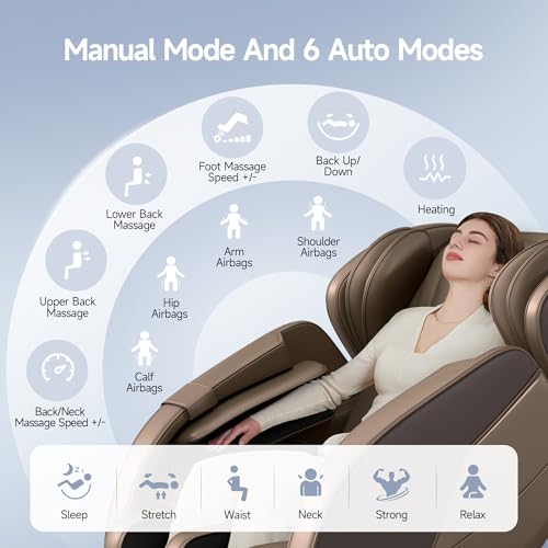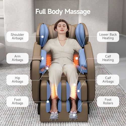 Specification: 2025 Massage Chair Full Body,Zero Gravity Lower Back and Calf Heating Shiatsu Massage Recliner with 6 Auto with Manual Modes,Home and Office Use,MM450 Brown and Gold