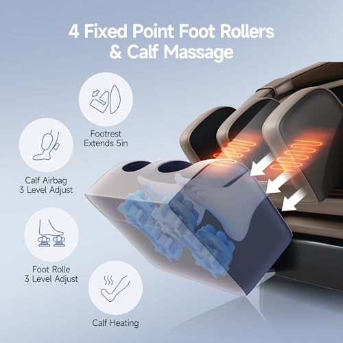 Calf Massage: 4 fixed-point roller massage on the sole of the foot, 3 levels of intensity adjustable, calf airbag massage, 3 levels of air pressure adjustable. With calf heating and footrest extension of 5 inches, suitable for people of different heights