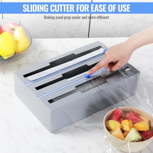 【BUILT-IN SLIDE CUTTER FOR CLEAN CUTS】-There’s no need to use the infuriating methods of tearing by hand or cutting with scissors anymore,this dispenser with sliding cutter for slots, it ensures a clean cut everytime!Making a straight cut to the size you need, reducing cling film waste.