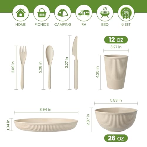 Specification: 36-Piece Wheat Straw Dinnerware Sets for 6, Farielyn-X Unbreakable Reusable Set Kitchen Cups, Plates, Bowls Sets & Cultery Dishwasher Microwave Safe – Patio, Outdoors, RV, Camping Dishes