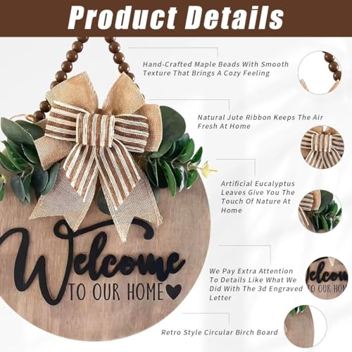 Specification: Condorpasea 3D Welcome Sign for Front Door | Home/Farmhouse Porch Décor Wooden Hanging Sign with Artificial Leaves and Rustic Beads | Christmas Classroom |12″ Round