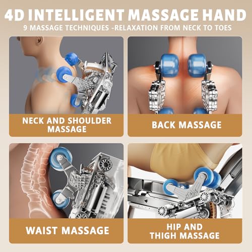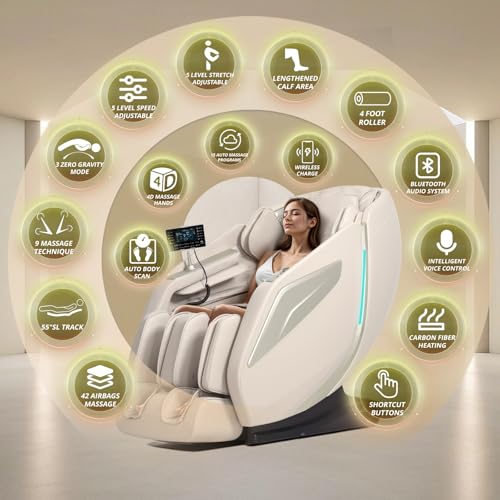 Specification: HealthRelife 4D Massage Chair Full Body Zero Gravity Recliner – 55“ SL-Track,15 Auto Modes,11 Massage Technique,40 Airbags Massage,with Yoga Stretch,APP Control,Shiatsu Foot Massage(Beige)