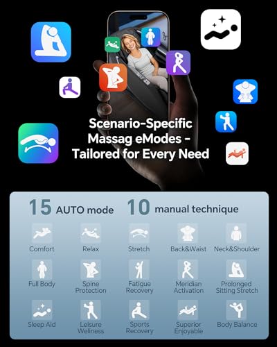Smart customized massage chair full body with 15 auto modes tailored to your lifestyle – sports recovery, fatigue recovery, sleep aid, prolonged sitting stretch,leisure wellness and more. Instantly find your perfect massage without complicated settings, delivering targeted relief exactly when you need it.