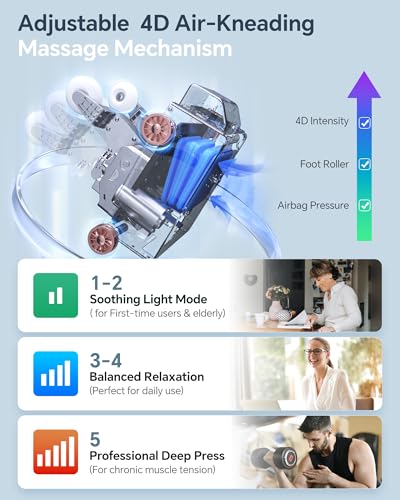 Adjustable 4D back massage intensity(5 levels), airbag pressure (5 levels) and foot roller strength (3 levels) is equipped with the full-body massage chair . Features widths/speeds with 5 levels. adjustable three-section airbags and auto-detecting shoulder positioning ensure perfect fit for every body type.