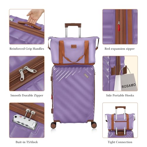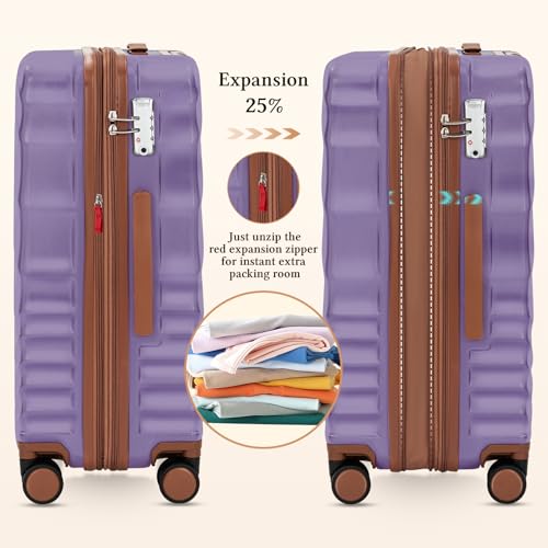 5 piece Luggage Set Expandable Suitcase 22x14x9 Airline Approved Carry on, ABS Hard Case Suitcases with Spinner Wheels, TSA Lock, (Purple, 5 Piece Sets(20/24/28/DB/TB))