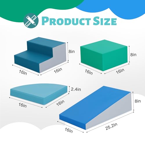 6-Piece Set: Baby climbing blocks consists of 2 dark green stairs, 2 sky blue half-moon, 1 green square and 1 navy slide. This soft play equipment stimulates your child’s imagination to create endless combinations of structures, allowing them to enjoy the fun of the toy as they climb up and down, stacking and swapping four different shapes