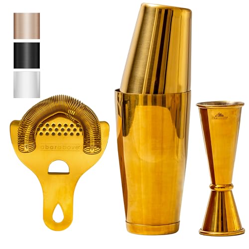 Specification: A Bar Above 4-Piece Cocktail Shaker Set, for Professional and Home Bar, Premium Bar Kit Gifts, Includes Strainer, Japanese Jigger, and Boston Shaker Set