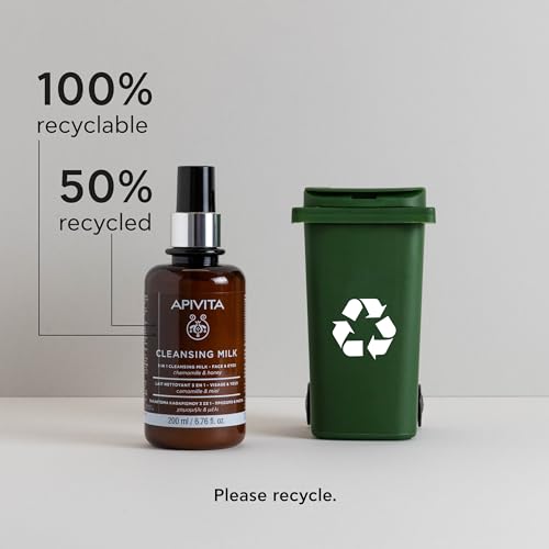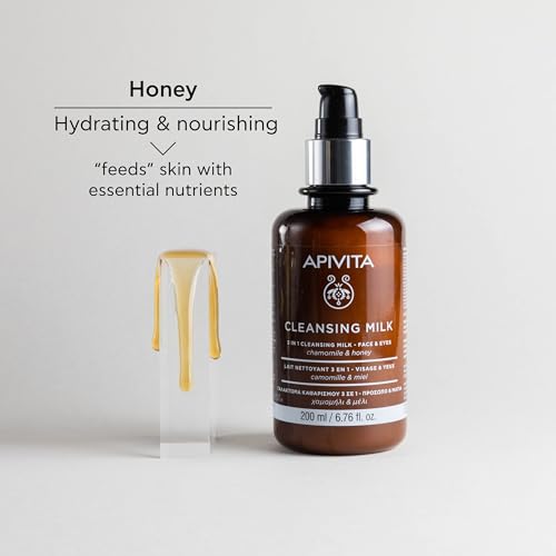 Apivita Cleansing Milk | Hydrating & Smoothing 3-in-1 Cleansing Milk Face & Eye Cleanser + Makeup Remover with Chamomile & Honey, 200 mL / 6.67 oz