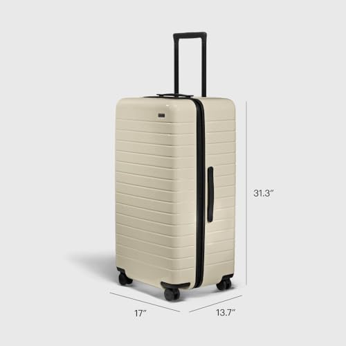 Specification: Away Large Trunk Luggage, 31 Inch Hardside Suitcase with Spinner Wheels, Lightweight & Durable, TSA Lock, Ideal for Long Trips, Salt White
