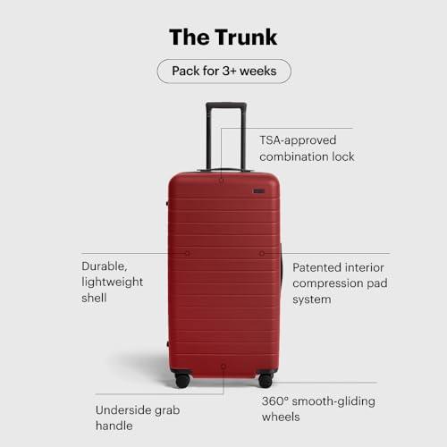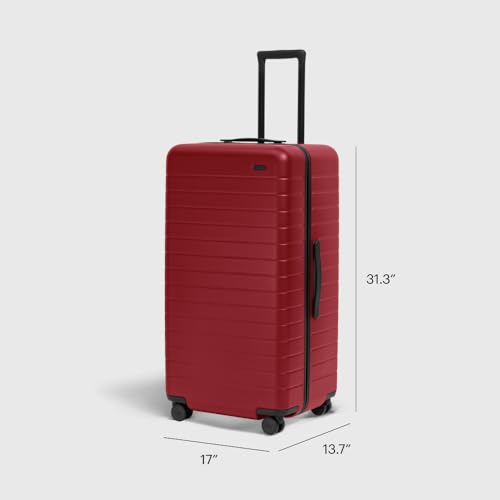 Specification: Away Large Trunk Luggage, 31 Inch Hardside Suitcase with Spinner Wheels, Lightweight & Durable, TSA Lock, Ideal for Long Trips, Tango Red