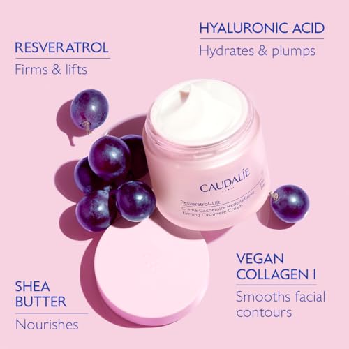 Caudalie Resveratrol-Lift Retinol Alternative Firming Cashmere Cream, Anti-Aging Moisturizer with Resveratrol, Hyaluronic Acid & Vegan Collagen, Refillable – 50 mL