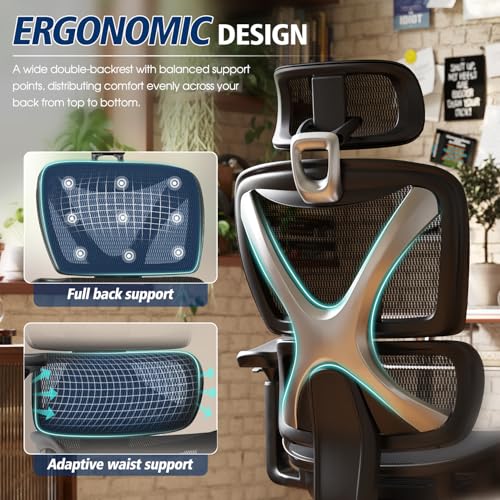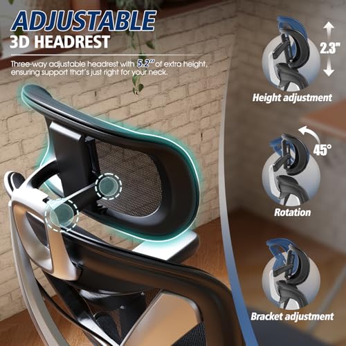 GABRYLLY Ergonomic Office Chair, Big and Tall Mesh Chair with Lumbar Support, 3D armrest – 215° Rotation, Adjustable Headrest & Soft Seat, Durable Computer Chair 350LBS for Work Gaming