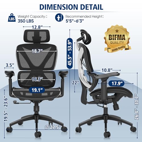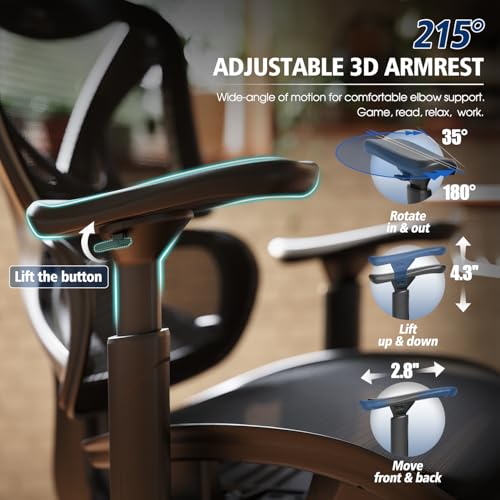 Specification: GABRYLLY Ergonomic Office Chair, Big and Tall Mesh Chair with Lumbar Support, 3D armrest – 215° Rotation, Adjustable Headrest & Soft Seat, Durable Computer Chair 350LBS for Work Gaming