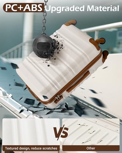 Specification: LONG VACATION 6 Piece Luggage Set Carry on Suitcase with ABS+PC hardshell, Spinner Wheels & YKK Zipper TSA Lock (WHITE-BROWN, 6 piece set)