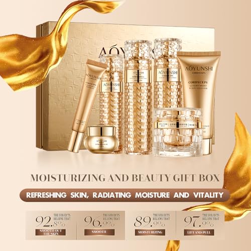 Specification: Luxurious Hydrating Skincare Gift Set with Cordyceps Extract – Includes Face Cleanser, Balm, Eye Cream, and 4-Piece Essence Set (Water, Serum, Emulsion, Cream)