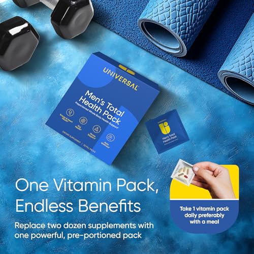 Universal U Total Health Vitamin Packs for Men – 30 Individual Capsule Packets Taking the guesswork out of choosing supplements Between work, family, fitness, and life, maintaining peak performance can be a challenge. That’s why the Men’s Total Health Pack was born – a complete multivitamin solution tailored for every man’s unique needs. Offering optimal convenience, each men’s multivitamin pack is pre-portioned, portable, and filled with everything males need to feel strong, energized, and focused every day. Each sachet contains 5 capsules, loaded with 22+ essential mens vitamins and minerals including Vit C, A, E, Thiamin, Riboflavin, Niacin, B6, Folate, B12, Biotin, D3 K2, and an Omega 3 soft gel to fill nutritional gaps and deliver optimal body performance Total Health multi vitamin packets also go beyond a basic mens multivitamins supplement and contain powerful extras including: Saw Palmetto and Stinging Nettle to promote prostate and urinary health* Antarctic Krill Oil rich in Omega-3 EPA DHA, astaxanthin, and choline for heart, joint, and skin health* Ashwagandha & PeakO2 Mushroom adaptogens for stress management, stamina, and focus* BioPerine & AstraGin to help boost nutrient absorption and promote overall gut health* Replace 9 supplement bottles with one convenient, science-backed solution. Each mens supplement pack supports whole-body wellness and is individually sealed for freshness, so you’re always prepared – at work, the gym, or on the go. Created for 20s – 40s and over 50 plus males who seek vitality. Trusted Quality for 40+ Years Made in the USA with rigorous third-party testing, Universal U meets the highest standards of potency and quality. *Statements regarding dietary supplements have not been evaluated by the FDA and are not intended to diagnose, treat, cure, or prevent any disease or health condition.