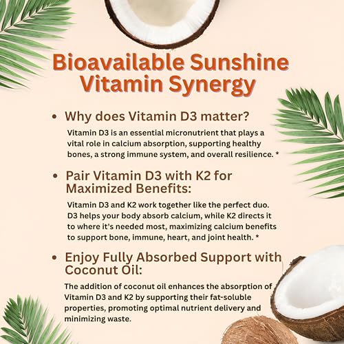 Each pouch offers 300 easy to consume mini coconut oil infused softgels. A potent one a day complex that provides natural sunshine vitamin synergy. 10,000 iu Vitamin D3 and 200 mcg vitamin K2 per dose.