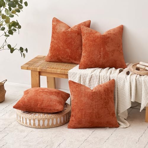 MIULEE Pack of 4 Couch Throw Pillow Covers Soft Decorative Chenille Pillow Covers Farmhouse Cushion Covers for Home Decor Sofa Bedroom Living Room