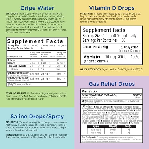 Specification: Mommy’s Bliss 4-Piece Newborn and Baby Essentials Kit – With Gripe Water, Gas Relief Drops, Vitamin D 400IU, and Saline Drops/Spray – The Perfect Baby Gift.