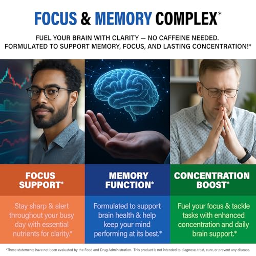 Focus & Memory Complex — stay sharp & focused naturally. Our focus & memory complex of multivitamin for men is crafted to support clarity, memory, and concentration without caffeine. Designed to keep your mind alert and performing at its best, this blend pairs perfectly with your lifestyle, helping you tackle your day with confidence & lasting focus.
