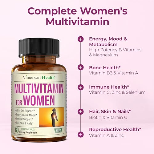 Multivitamin for Women – Essential Womens Multivitamins & Multiminerals 60 Liquid Capsules with Vitamin B12, A, D, C, Zinc, Magnesium & More for Total Wellness – 29 Key Nutrients & Vitamins for Women