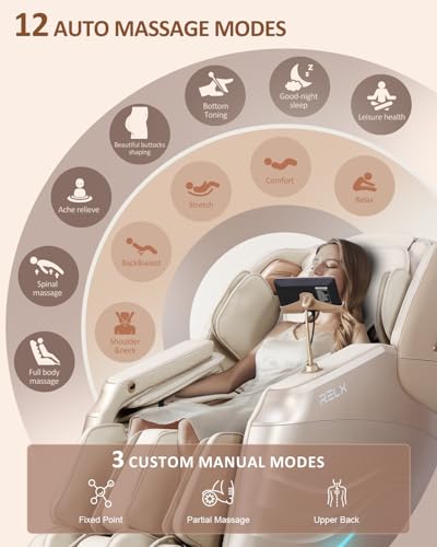 Specification: RELX 2025 Massage Chair Full Body, 15 Modes Zero Gravity SL-Track Shiatsu Massage Chair Built-in Heat System, Airbag Massage with Body Scan, Deep Yoga Stretch, Calfrest Extension and AI Control(Cream)