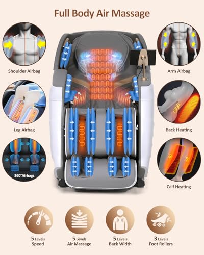 【Massage Chair Full Body】Massage Chair with advanced massage rollers mimicking 𝟗𝟓% of a real human massage, this chair delivers professional-level relief, melting away stress and tension. Whether you crave gentle relaxation or a deep-tissue treatment, it adapts with 𝟏𝟓 𝐚𝐮𝐭𝐨 𝐦𝐨𝐝𝐞𝐬, 𝟓 𝐦𝐚𝐧𝐮𝐚𝐥 𝐦𝐨𝐝𝐞𝐬, and 𝟑𝟐 𝐚𝐢𝐫𝐛𝐚𝐠 massage points offering 𝟓 𝐩𝐫𝐞𝐬𝐬𝐮𝐫𝐞 𝐥𝐞𝐯𝐞𝐥𝐬. Enjoy a fully customized, rejuvenating experience—all at your command