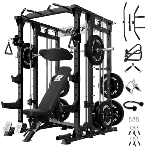 RitFit Buffalo Smith Machine, Power cage with LAT-Pull Down System & Cable Crossover System, All-in-One Squat Rack for Home Gym, Power Rack and Packages
