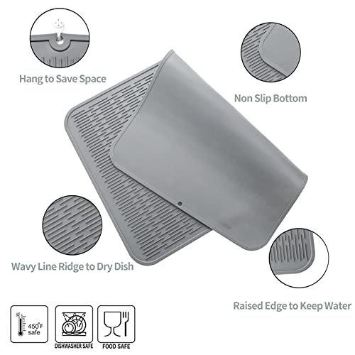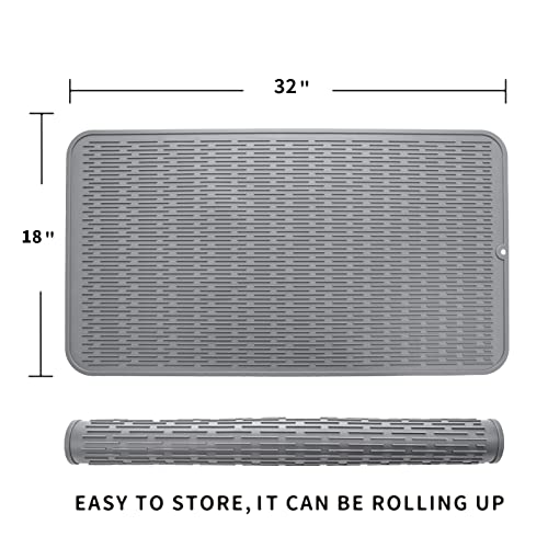 MicoYang Silicone Dish Drying Mat for Multiple Usage,Easy clean,Eco-friendly,Heat-resistant Silicone Mat for Kitchen Counter or Sink,Refrigerator or Drawer Liner Grey 4XL 32 inches x 18 inches