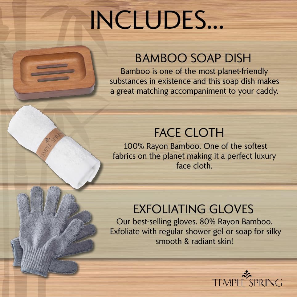 INCLUDES MATCHING BAMBOO ACCESSORIES – Each purchase includes a matching bamboo soap dish, face cloth, and exfoliating gloves for added convenience. Pair this wooden tray with your favourite bathtub accessories to complete your bathroom tray setup.