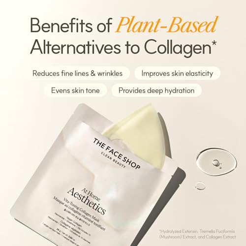 Specification: THE FACE SHOP Vita-Toning Vegan Collagen Face Mask, Korean Glass Skin Essential, Hydrogel Mask for Moisturizing & Skin Elasticity, Improves Uneven Tone, 4EA