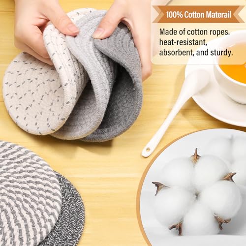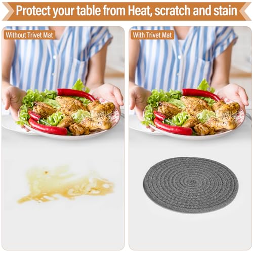 Excellent Function: These hot pads for kitchen are made of cotton ropes, which are super absorbent, flexible and sturdy. They can be placed under hot dishes, hot pots and pans as protection and decoration, which can effectively blocks heat sources, scratches and stains, perfectly protecting the tabletop and extending the life of the table.