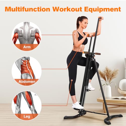Specification: Vertical Climber Exercise Machine for Home Gym with 4 Metal Guide Rails Folding Exercise Climber Cardio Workout Machine 5-Level Heights Stair Stepper Newer Version, Easy to Assemble
